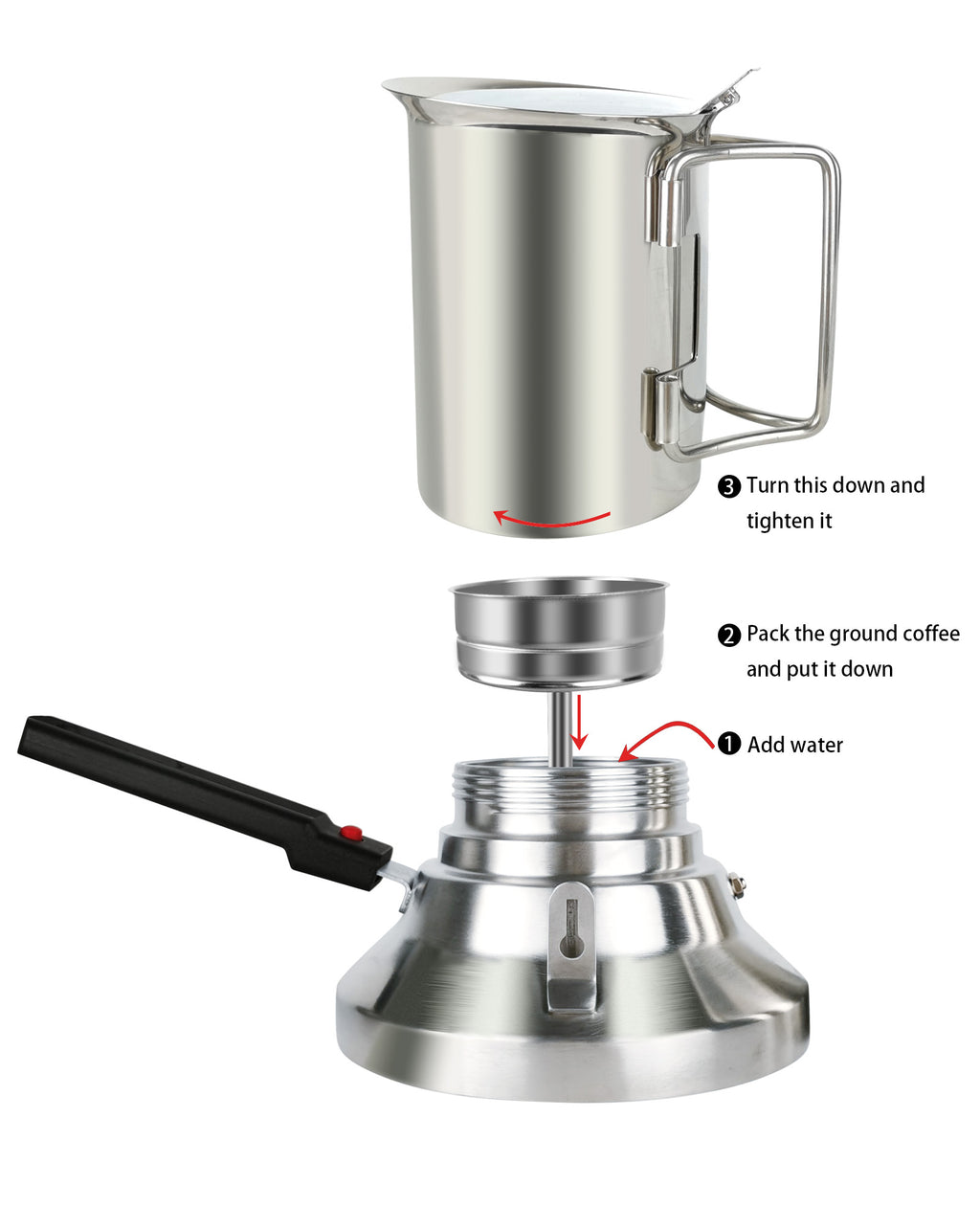 Cafetière expresso en acier inoxydable, 12 tasses, Moka, pour préparation de cafés italiens et cubains