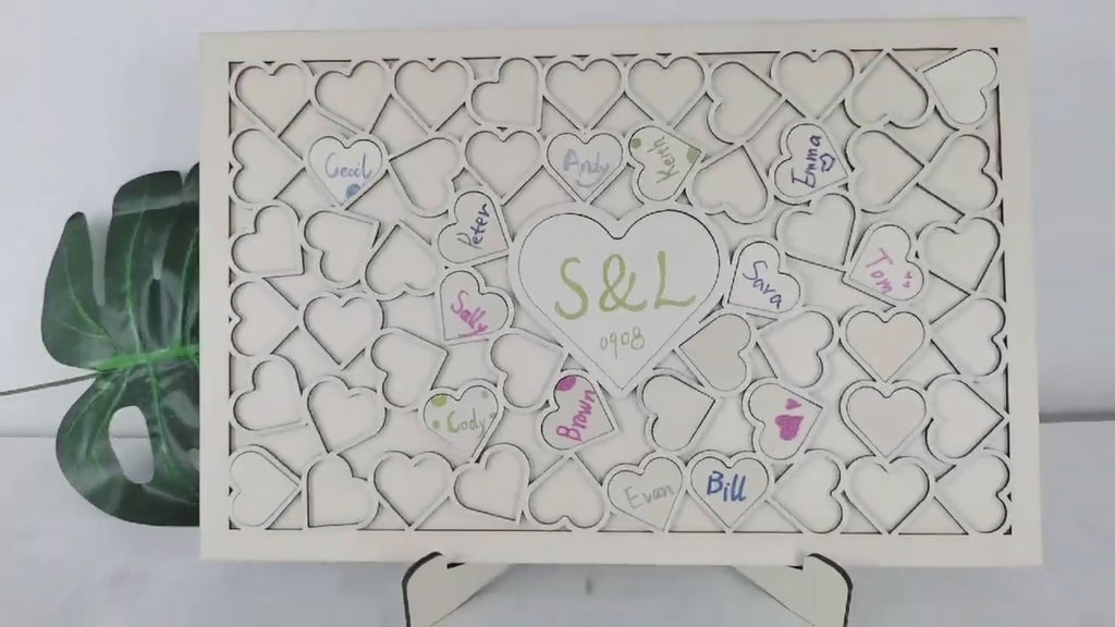 Alternative Wooden Guest Book - Party Addition Keepsake (58pcs small heart pieces)
